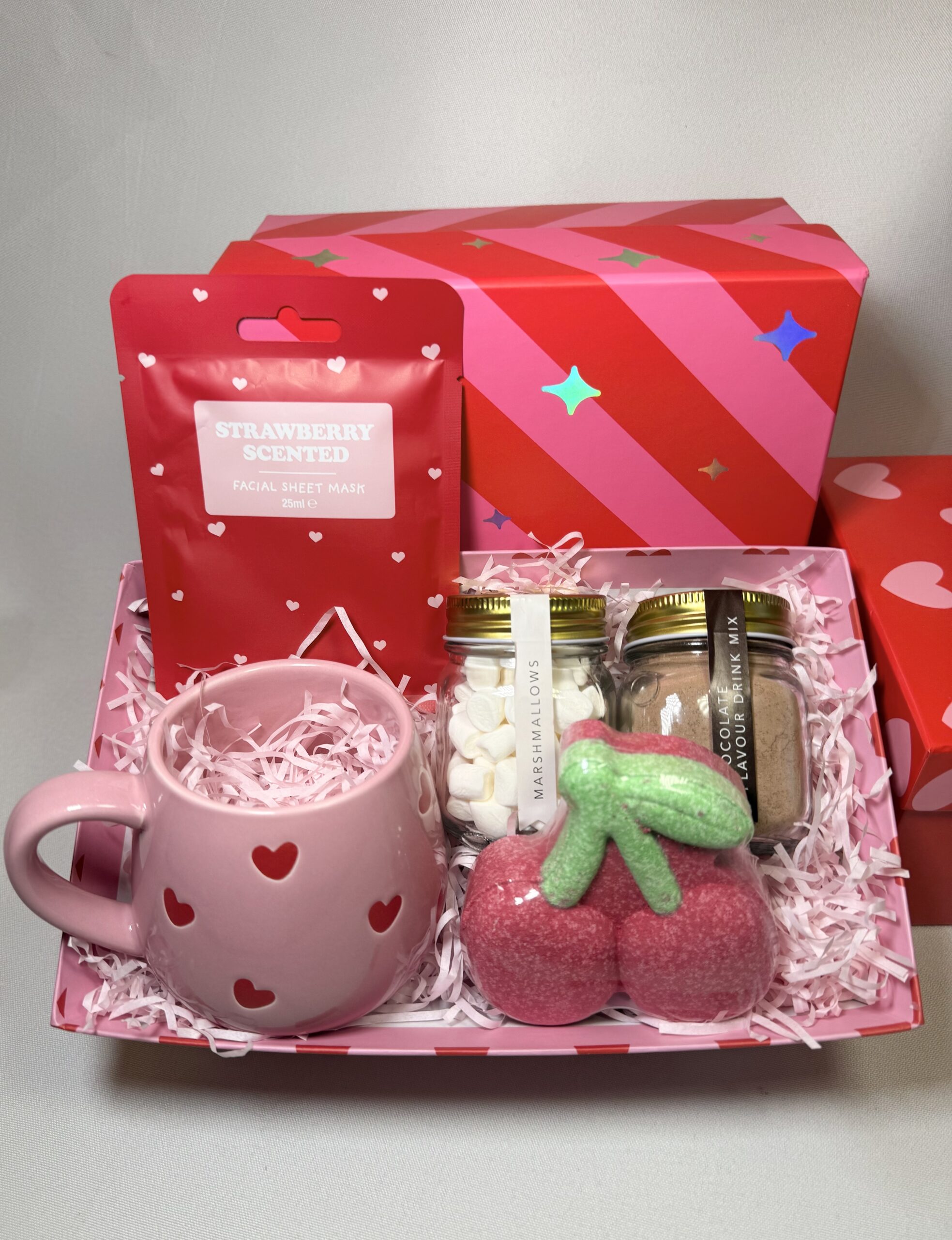 Cosy, cute and made for the perfect Valentine’s reset. The Cherry Glow Night-In Box is a dreamy self-care hamper designed for soft moments, warm sips and glowing skin. Featuring a cherry scented facial sheet mask for that fresh, hydrated feel, a heart-print mug for the cutest hot chocolate setup, and sweet extras to make your night in feel extra special.